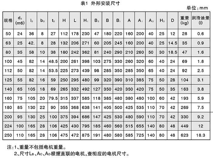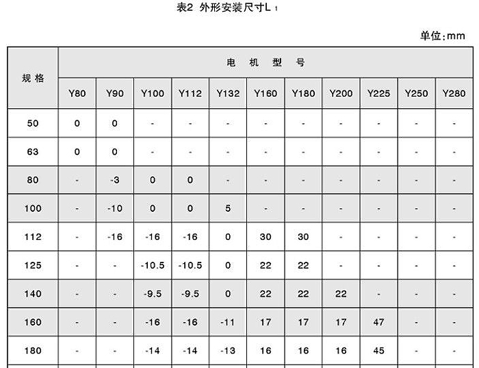 注:表中带负号者,其数值为电机凹入减速器的长度值。