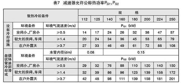 按润滑油最高平衡温度计算的公称热功率PG1、PG2,见表7