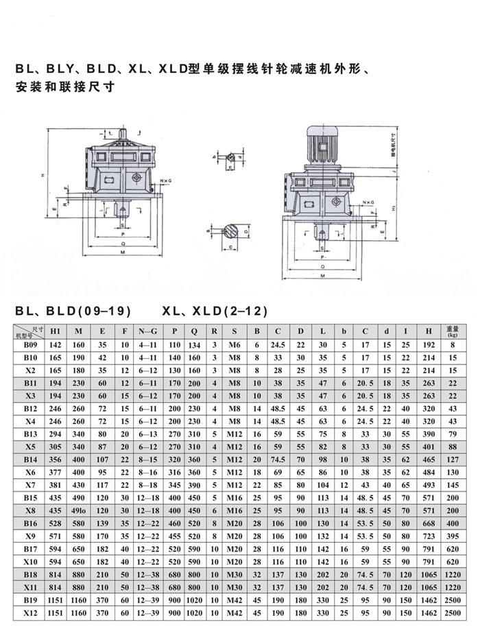 BL、BLY、BLD、XL、XLD型单级摆线针轮