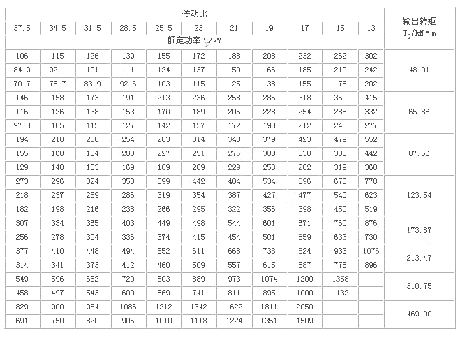承载能力强,使用寿命长,9—18对齿同时进入啮合区,可承受过载2.7倍.输出转矩达938KN.m。
