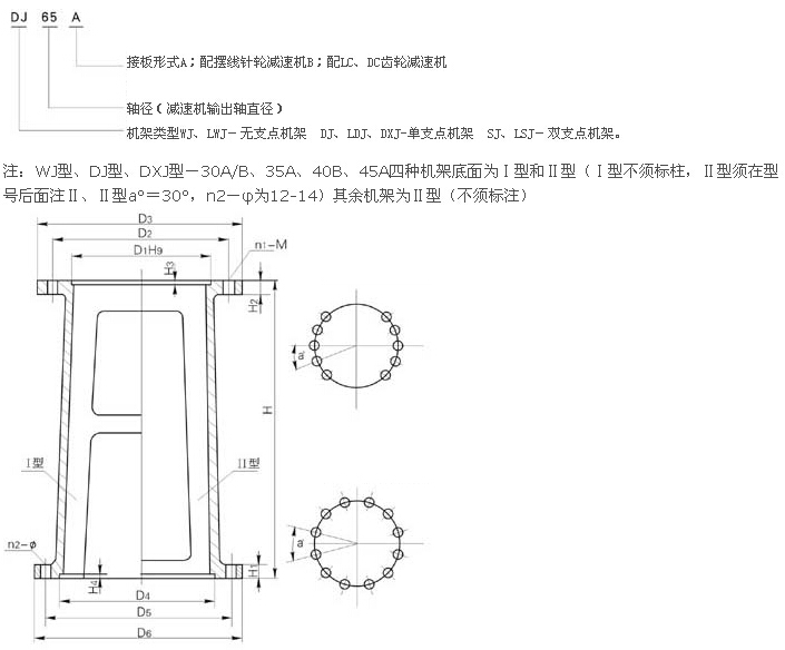 机架代号 H1 H2 H3 H4 输入端接口 输出端接口 WJ型 LWJ型
