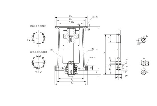 产品用途: DXJ型单支点机架主要参数及尺寸 注:图示所注“h”仅与本样本BLD、LC-Ⅱ、DC-Ⅱ系列减速机相配,如选用其他型号或其他厂家减速机,“h”需另行计算。