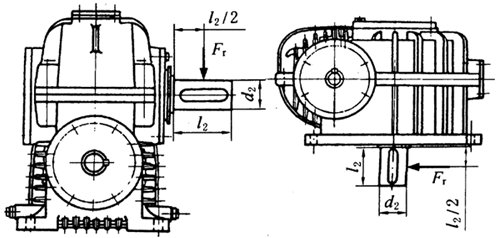 产品用途: TP型平面包络环面蜗杆减速机产品简介及标记 TP型平面包络环面蜗杆减速机(JB/T9051-1991)为平面一次包络蜗杆传动。中心距:100、125、160、200、250、315、400、500。速比:10、12.5、16、20、25、31.5、40、50、60。平面包络环面蜗杆减速机是一种新兴的传动装置,其承载能力大,传动效率高,结构紧凑、合理。这种减速机可以广泛地应用于各种传动机械中的减速传动,如冶金、矿产、起重、化工、建筑、橡塑、船舶等行业以及其它机械设备上,适用工作环境温度为-40℃~+40℃,输入轴转速不大于1500转/分,蜗杆轴可正反两方向旋转。此减速机是按照中华人民共和国机械行业标准JB/T9051——1999《平面包络环面蜗杆减速机》设计制造。 型号与标记示例 1 型号 标记示例 例 蜗杆在蜗轮之下, 中心距为200mm, 公称传动比为10, 第二种装配型式, 有风扇冷却的平面 包络环面蜗杆减速器: 减速器 TPU200 - 10 - 2F JB/T 9051—1999 TP型平面包络环面蜗杆减速机基本参数 中心距a (mm) 注:优先选用第一系列,表中第二系列的中心距仅提出型式规格。 减速器的公称传动比i 蜗杆螺旋线方向 为右旋。 TPG80、TPG100、通用型减速机形式及外形尺寸(Ⅰ—Ⅲ) TPG通用型减速器形式及外形尺寸 (mm) TPG80、TPG100、通用型减速机形式及外形尺寸(Ⅳ—Ⅵ) TPG通用型减速器形式及外形尺寸 (mm) TPG通用型减速器形式及外形尺寸 (mm) TPG80、TPG100、通用型减速机形式及外形尺寸(Ⅺ—XIII) PG通用型减速器形式及外形尺寸 (mm) TPU125、TPU160、TPU200、TPU250、TPU315、TPU400、TPU500通用型减速机形式及外形尺寸 TPU通用型减速器形式及外形尺寸 (mm) TPS125、TPS160、TPS200、TPS250、TPS315、TPS400、TPS500、通用型减速机形式及外形尺寸 TPS通用型减速器形式及外形尺寸 TPA125、TPA160、TPA200、TPA250、TPA315、TPA400、TPA500、通用型减速机形式及外形尺寸 TPA通用型减速器形式及外形尺寸 TP型平面包络环面蜗杆减速机的额定输入功率P1(80~125) TP型平面包络环面蜗杆减速机的额定输入功率P1(160~500) 注:1.不带风扇的减速器,其功率值为本表的0.6~0.75倍。 2.红框内为v>10m/s,应采用循环润滑。 TP型平面包络环面蜗杆减速机的额定输出转矩T2 注:1.不带风扇的减速器,其转矩值为本表的0.6~0.75倍。 2.红框内为v>10m/s,应采用循环润滑。 3.本标准减速器可承受短时间峰值负荷,峰值转矩为额定转矩的2.5倍。 TP型平面包络环面蜗杆减速机的传动总效率η TP型平面包络环面蜗杆减速机蜗杆蜗轮啮合滑动速度v 注:红框内为v>10m/s,应采用循环润滑。 TP型平面包络环面蜗杆减速机低速轴轴端许用径向负荷Fr 减速器低速轴轴端许用径向负荷Fr TP系列减速机技术要求 接触斑点的大小 接触斑点的大小 侧隙jC和jb 轴承的轴向间隙 减速机的选用方法和润滑 1)减速器的选用 ①选用的已知条件: a.原动机类型及工作机负荷性质; b.额定输入功率P1(kW)或额定输出转矩T2(N·m); c.输入转速n1(r/min); d.最大输出转矩T2max(N·m)(对于低速传动的场合); e.传动比; f.输入输出轴的相对位置; g.输入输出轴的转向、装配型式。 ②工作类型: a.负荷性质; b.每日运行时间(h); c.每小时启动次数; d.小时负荷率JC(%)。 ③环境温度。 ④输出轴轴端附加负荷。 2)减速器的润滑 ①蜗杆蜗轮啮合,一般采用浸油润滑,浸油液面,对于TPG型式,采用全浸;对于TPU式、TPA型式、TPS型式,液面与蜗杆轴线重合,当啮合滑动速度v>10m/s时,采用强迫润滑。 ②在通常情况下,可根据滑动速度的大小,选择润滑油牌号,表1为推荐的润滑油牌号。 推荐润滑油牌号 ③润滑油不允许采用极压齿轮油。 ④减速器的润滑油量按油标加注,可按表2所列油量备油。 润滑油油量 3)采用强制润滑 润滑油黏度为242~198 cst/40℃,注油压力为1.5~2.5Pa,每分钟注油量按表3的规定。 强制润滑时的注油量
